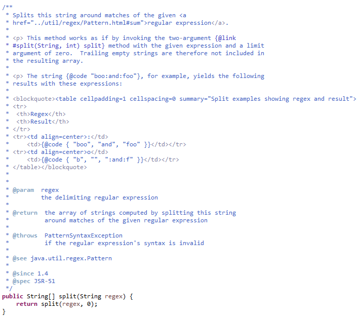 📄split(String regex) - 정규표현식 이나 특정 문자를 regex(String) 인자 값을 이용하여 나누어진 문자열을 문자열 배열(String[])로 반환한다.