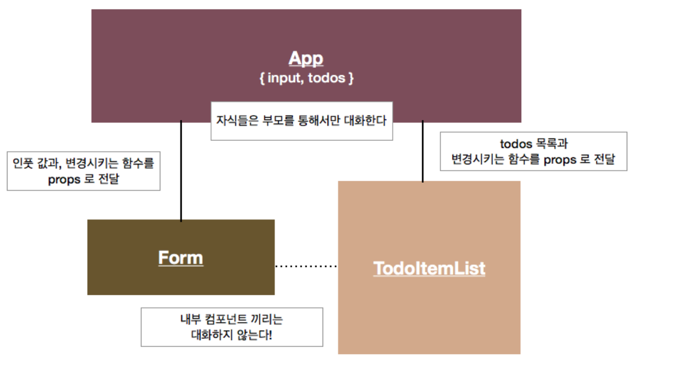 부모 컴포넌트에서 모든걸 관리하고 아래로 내려주는 것이기 때문에, 직관적이기도 하고, 관리하는 것도 편하다고 생각할 수 있습니다.