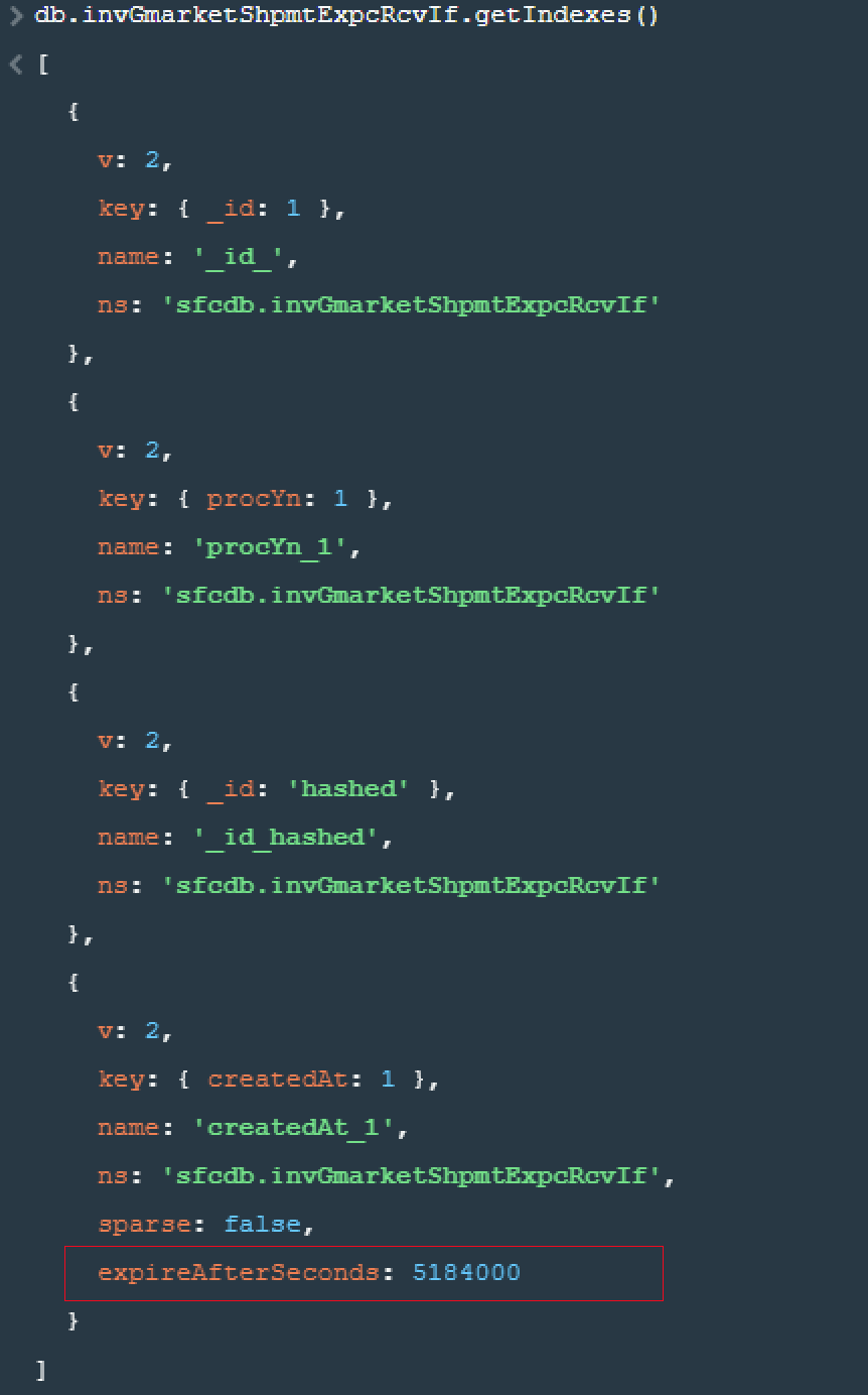 설정 주기를 얼마로 했는지 확인하는 방법 (기준: 초) => 해당 collection에서 인덱스들을 조회해서 설정초 확인