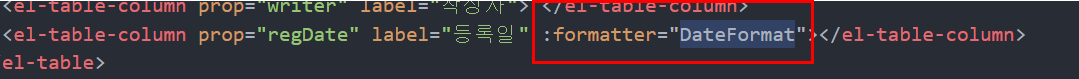 <el-table-column prop="regDate" label="등록일" :formatter="DateFormat"></el-table-column>