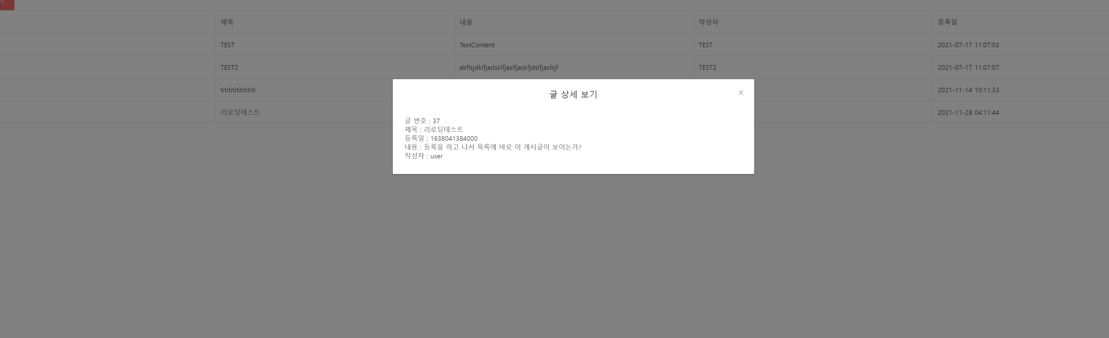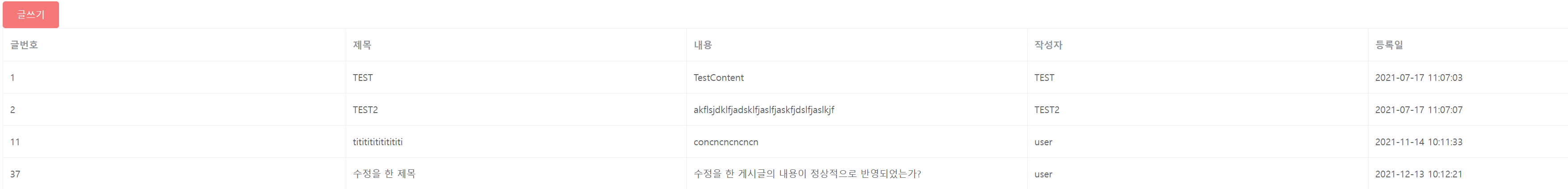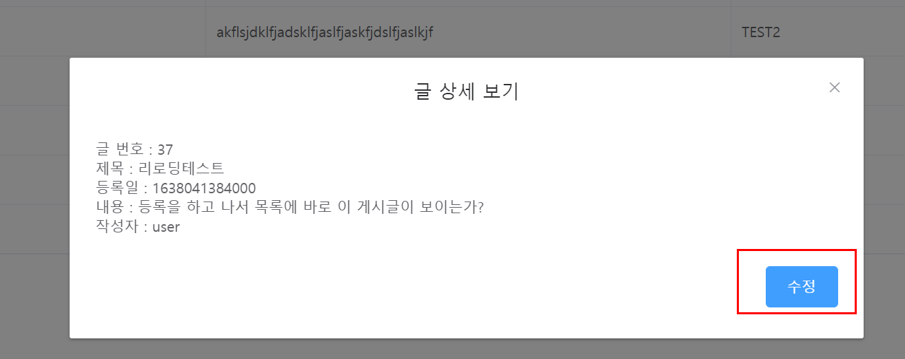 다시 시도 후에는 정상적으로 목록을 다시 불러와서 수정 후에 수정된 목록까지 잘 호출되어 바뀌는 걸 확인할 수 있습니다.