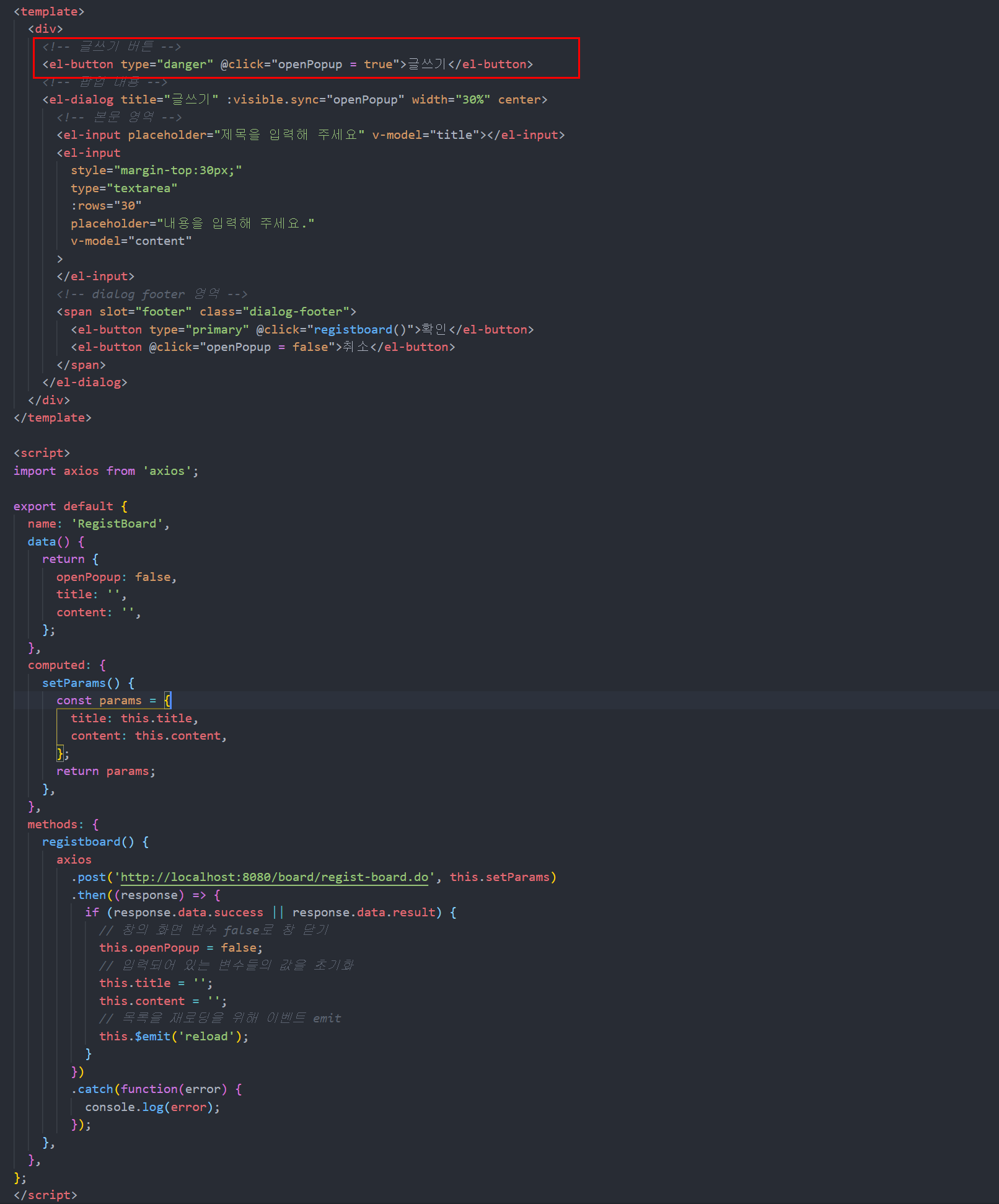 | 스프링 (Spring Vue) 게시판 만들기 #11. 글등록 한글 오류 및 등록 후 목록 리로드 (0) | 2021.11.28 |