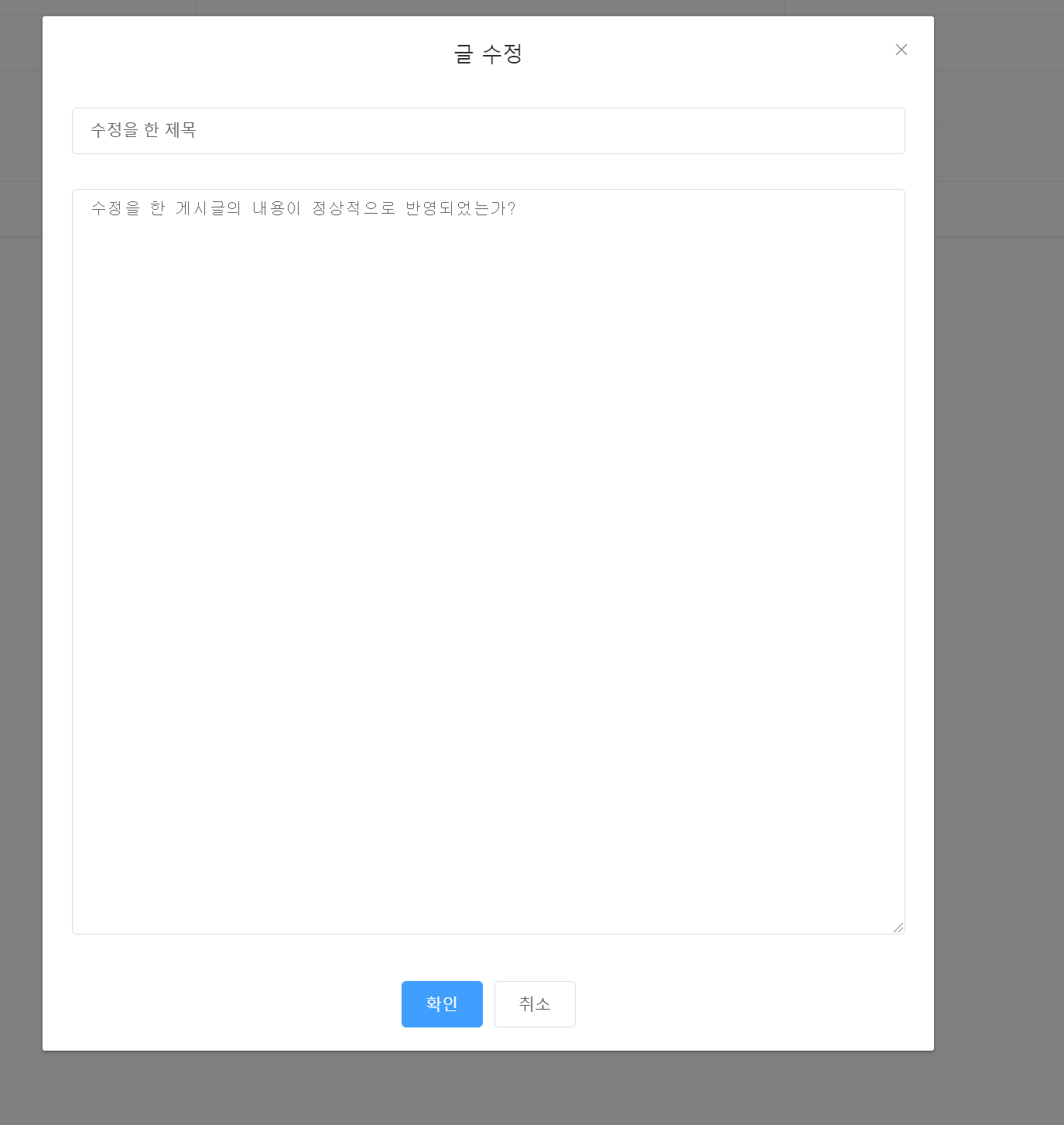 글 수정은 글 상세보기에서 버튼을 누르면 수정하는 폼을 보여주도록 하는 방식으로 구현해보겠습니다.