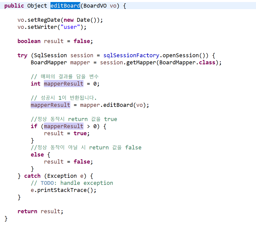 mapperResult = mapper.editBoard(vo);