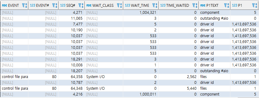 ⑧ 현재 발생 중인 대기 이벤트의 파라미터 정보