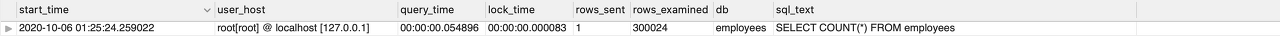 SELECT COUNT(*) FROM employees; # 0.054 sec