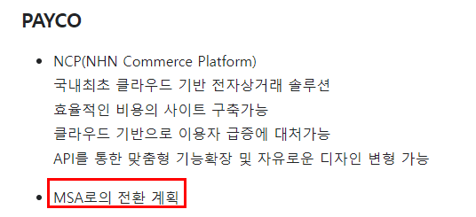 이외에도 카카오, 배달의 민족 (우아한 형제들)등 흔히 MSA 아키텍쳐를 도입하는데 있어서 마이크로 서비스로 전환을 했다는 표현을 많이 합니다.