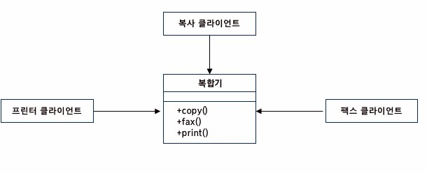 클라이언트의 필요에 따라 프린터 기능만 이용하는 클라이언트가 팩스 기능의 변경으로 인해 발생하는 문제에 영향을 받지 않도록 해야한다.