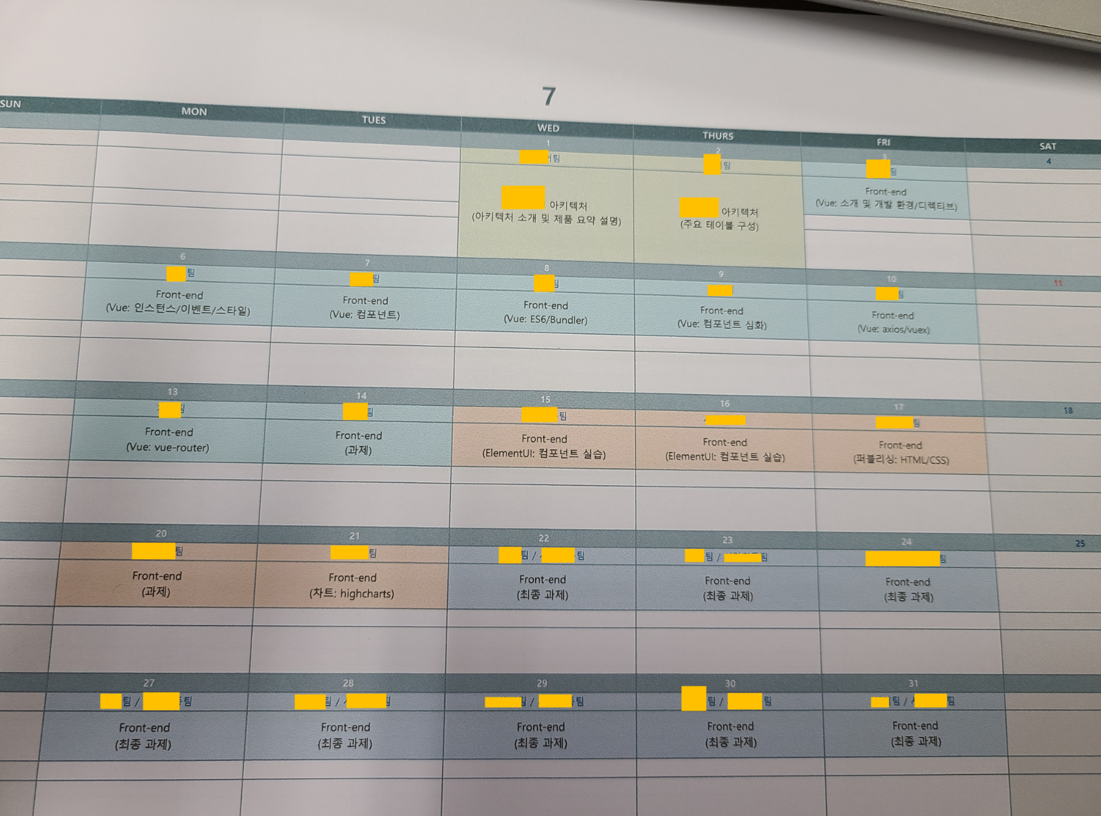 당시에 회사에서 프론트엔드로 Vue.js를 사용하는데 자바스크립트의 기초는 알고 있지만 Vue에 대해서는 모르는 상태에서 OJT에서는 Vue에 대한 교육을 따로 해주는 기간이 있었습니다. SQL도 ANSI 기준으로 인덱스나 쿼리 튜닝, 실행계획에 대한 부분들을 알려줘서 도움이 많이 되었던 것 같습니다.