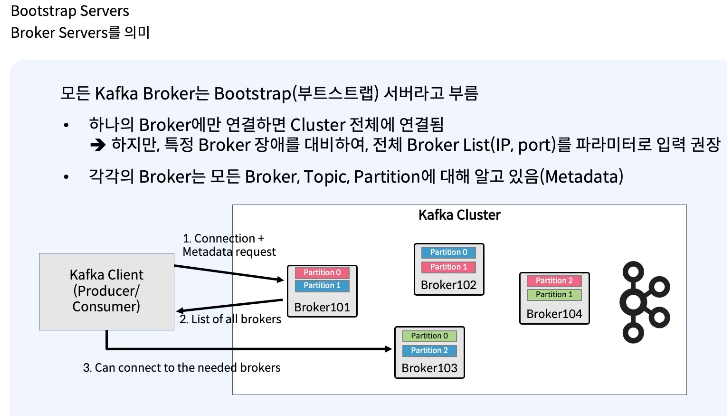 여기서 부트스트랩을 카프카가 가지고 있는 전체 브로커들을 부트스트랩 서버라고 부르기도 한다.