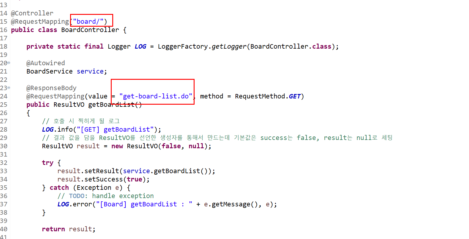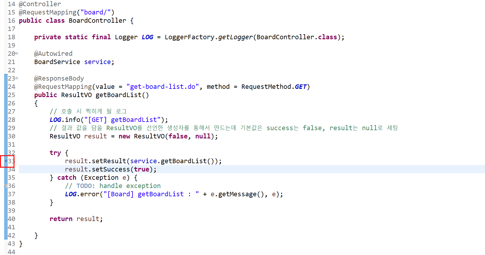정상적으로 호출하는지 확인하기 위해서 getBoardList의 메소드 중 아무 라인이나 break point를 잡아봅니다.