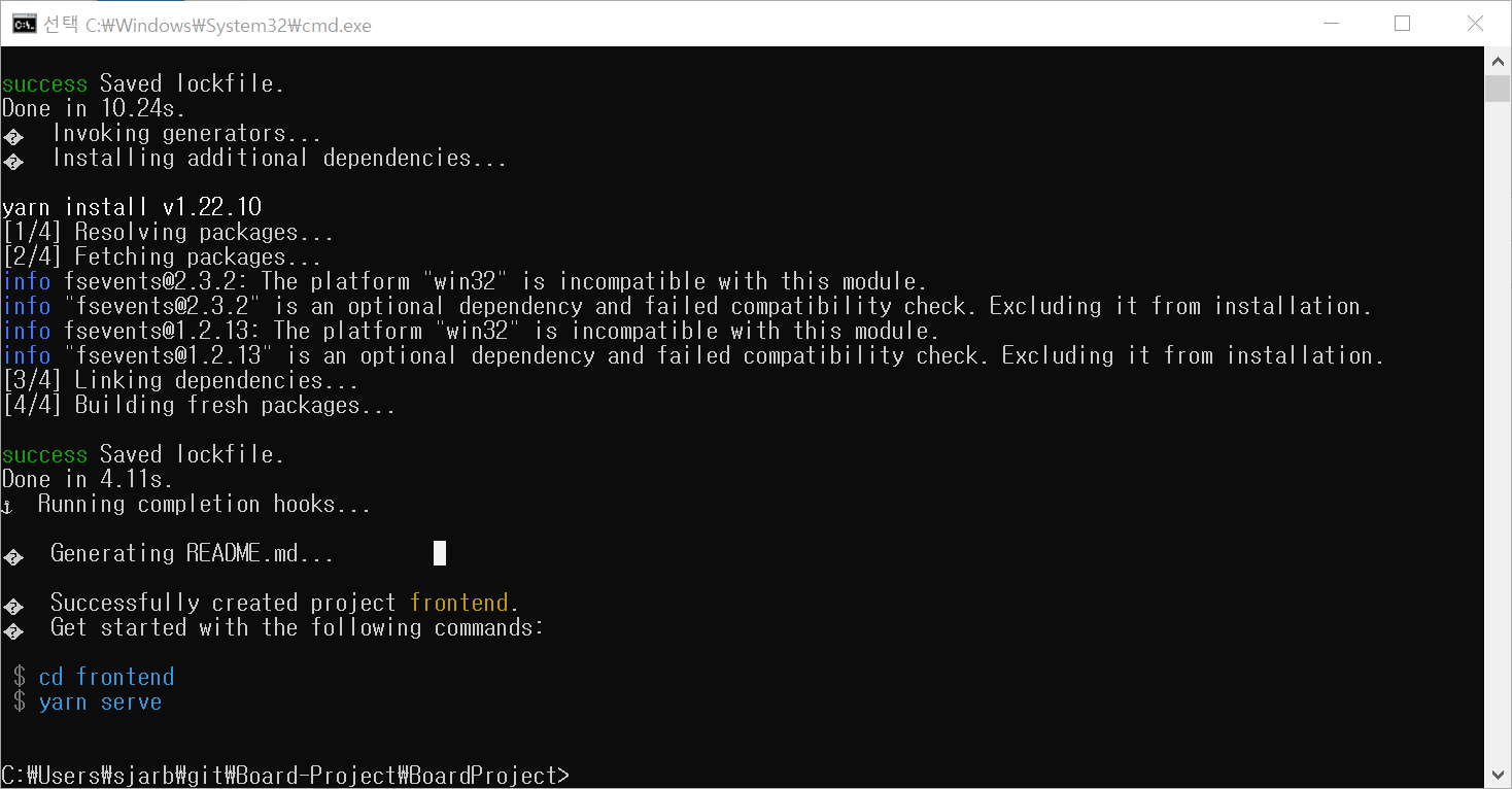 아까 없었던 frontend라는 폴더가 생성되었는것을 확인 할 수 있습니다.