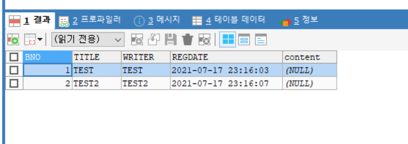 내용이 비어있는건 cotent가 NULL값이라 그렇고 등록일은 숫자로 나옵니다(해당 숫자는 unix timestamp값이라 저렇게 표현이 되는겁니다.)