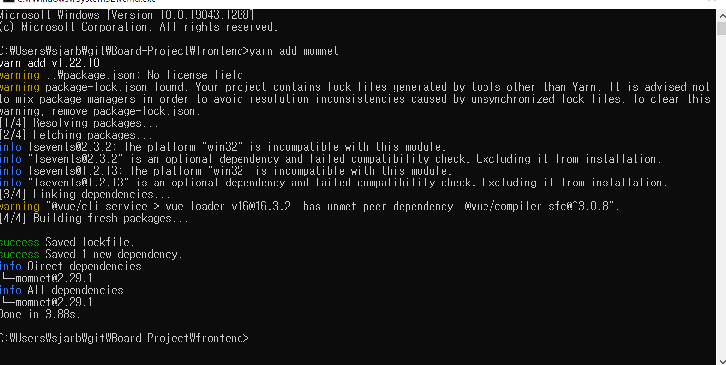 위에서 처럼 yarn add moment를 통해 패키지를 받습니다.