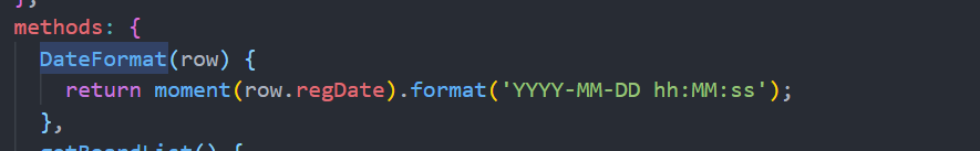 return moment(row.regDate).format('YYYY-MM-DD hh:MM:ss');
