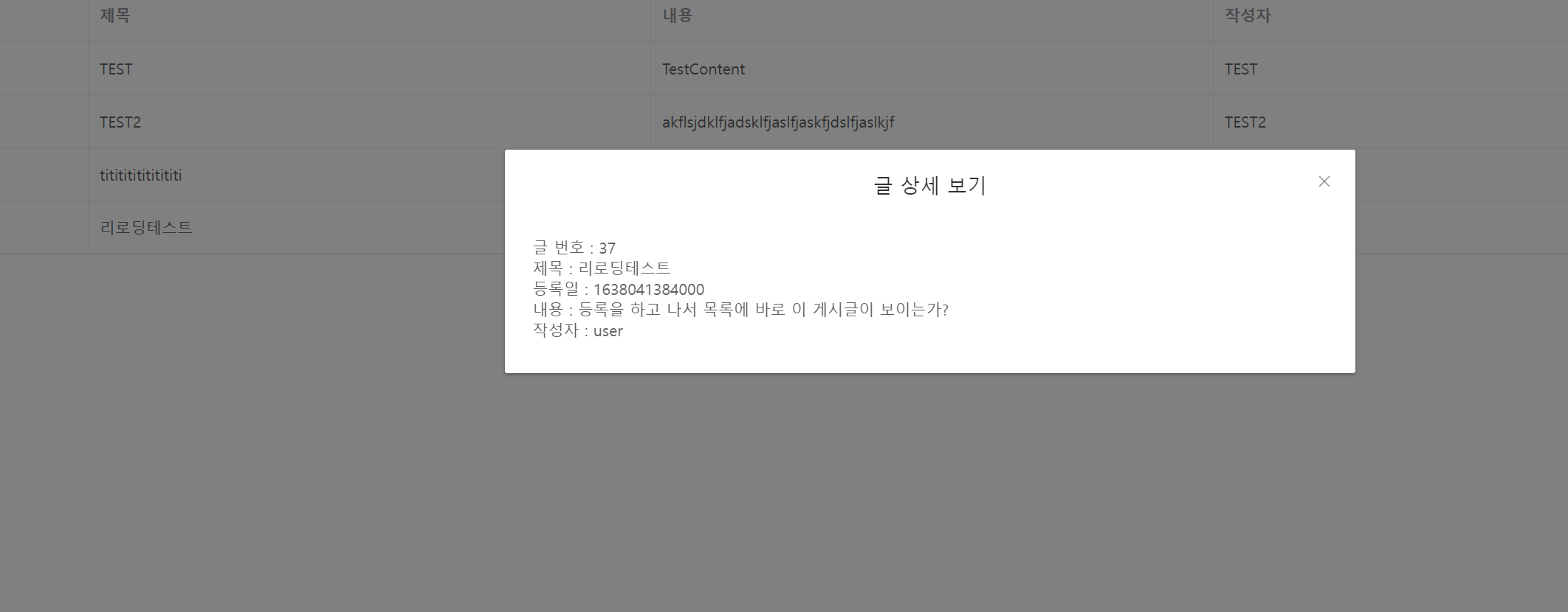 다시 시도 후에는 정상적으로 목록을 다시 불러와서 수정 후에 수정된 목록까지 잘 호출되어 바뀌는 걸 확인할 수 있습니다.