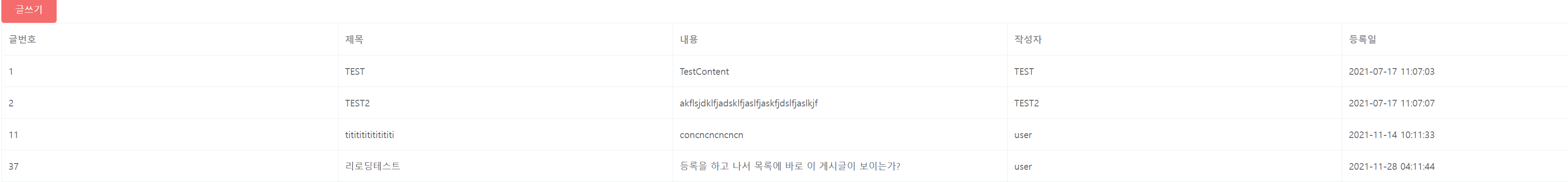 (title, content, writer, regDate)